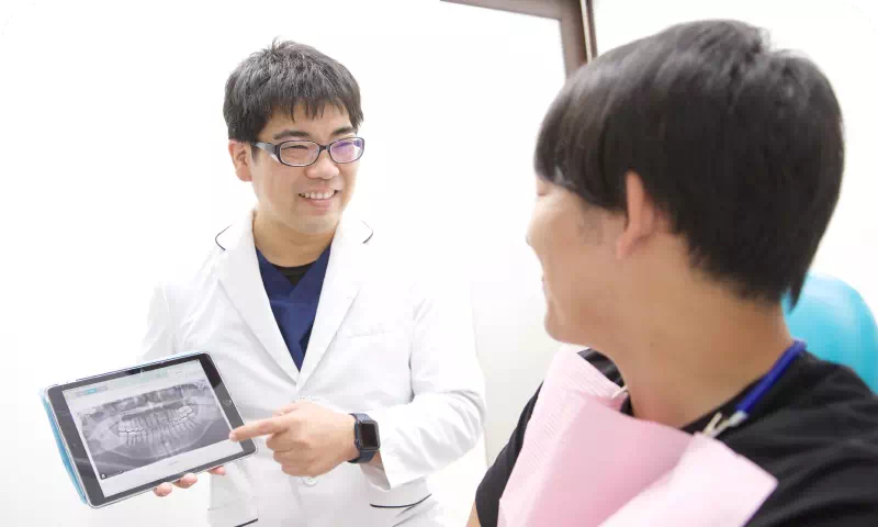 幅広く対応できる虫歯、親知らず、矯正、審美歯科、インプラント、顎関節治療まで、歯のお悩みはなんでも対応いたします。些細な気になることでもご相談ください。